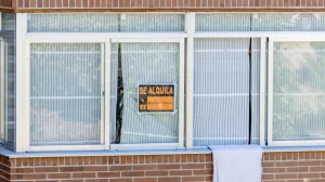 Un cartel que anuncia que se alquila una vivienda, en Madrid (España).Ricardo Rubio / EP
